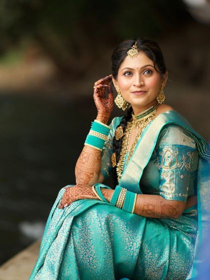 While I specialize in Maharashtrian looks, I love creating beauty that transcends cultural boundaries. I offer authentic South Indian bridal looks, complete with traditional Kanjeevaram saree draping, elaborate braided hairstyles with temple jewelry, and makeup that highlights a radiant, golden glow.