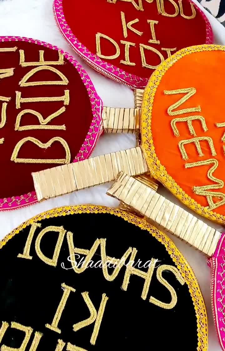 Add a dose of fun and personality to your wedding photos and bridal entry with my custom props. I create these quirky, handheld signs with fun phrases like 'Team Bride' or personalized messages for the couple.
