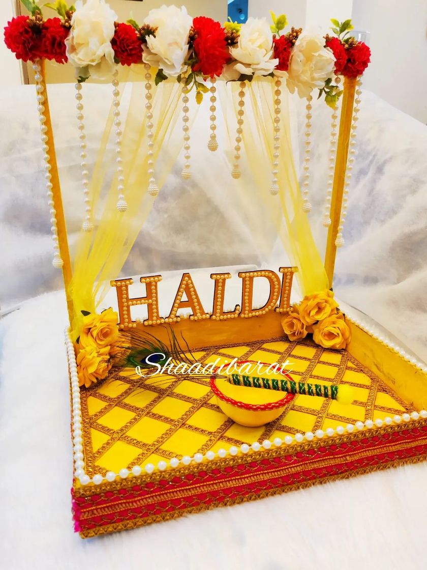I believe your Haldi and Mehendi ceremonies should be as unique as you are, which is why I love creating custom decor. I design everything from decorative platters with your names to quirky umbrella canopies and fun props for your bridal entry.