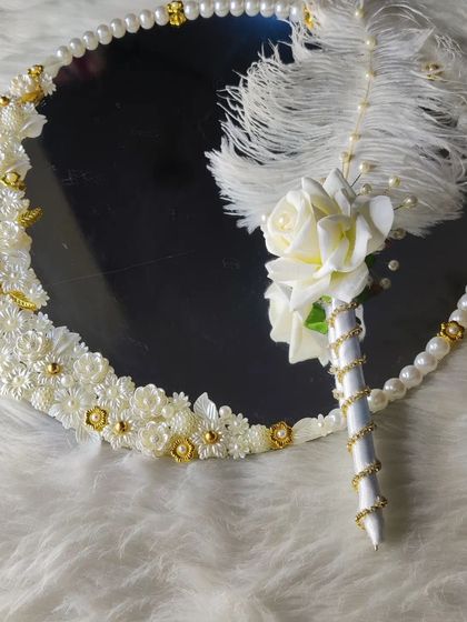 Handmade Wedding Accessories - I create custom Haldi platters, floral jewelry, Nikah certificates, mirrors, dupattas, bridal clutches and more.