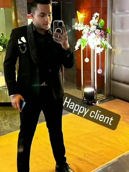 See our custom designs come to life on our clients. We offer a guaranteed fitting service, either at your doorstep in Mumbai or through a precise online process for delivery anywhere in India, ensuring your outfit is perfect.