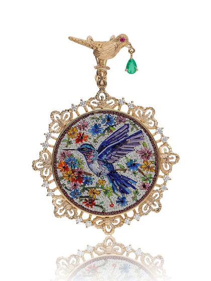 I handcraft micromosaic jewellery in 18k gold with natural gems, making each piece unique with detailed designs inspired by nature and spirituality.