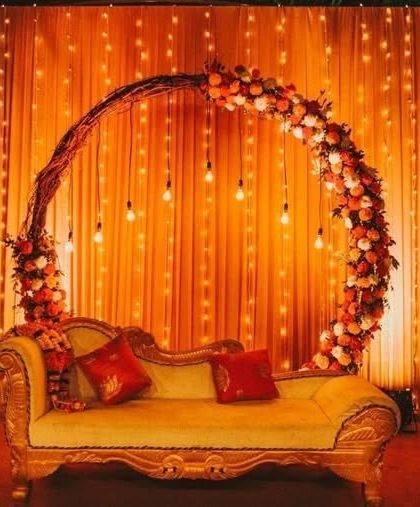 I create vibrant, high-energy setups perfect for your pre-wedding ceremonies. I use traditional elements like genda phool and colorful drapes, and can design everything from the main stage to guest seating for both indoor and outdoor events.
