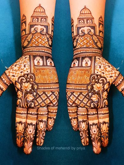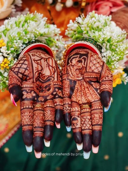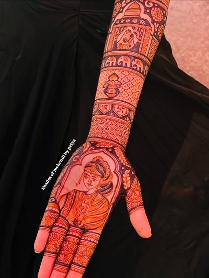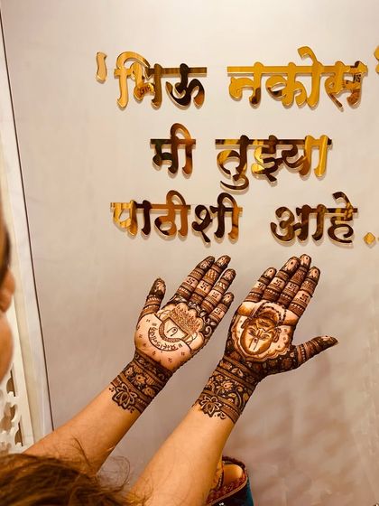 I design custom bridal mehendi with portraits, wedding scenes, and personal touches, and I travel anywhere in Mumbai to make sure your mehendi matches your story.