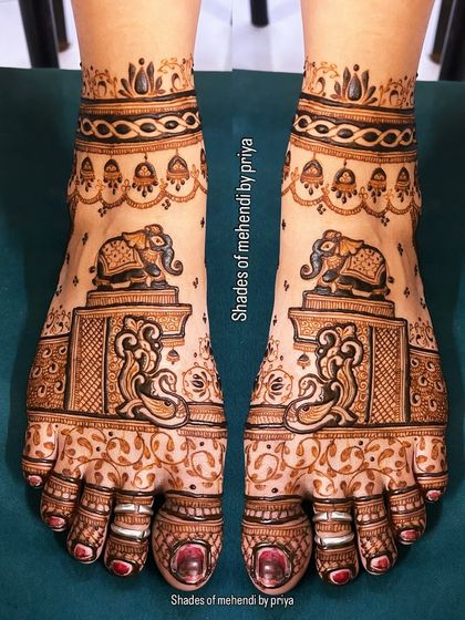 I design custom bridal mehendi with portraits, wedding scenes, and personal touches, and I travel anywhere in Mumbai to make sure your mehendi matches your story.