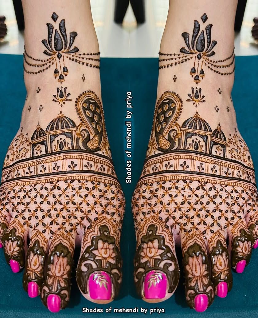Complete your bridal look with beautiful henna for your feet. I offer everything from full, intricate patterns that match your hand mehendi to simpler, more minimal designs for any occasion.