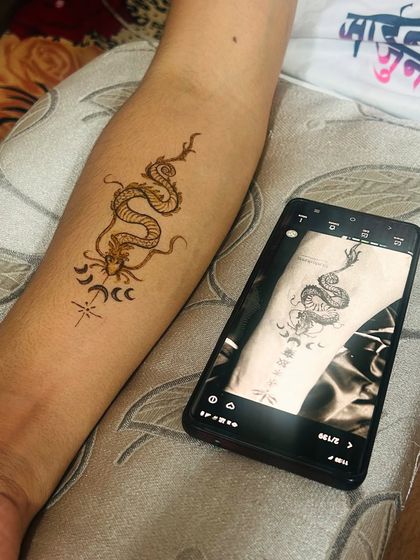 For those who prefer a modern or understated look, I offer a variety of styles. This includes elegant white henna for parties, trendy henna tattoos, and minimalist patterns like simple mandalas or moon designs.