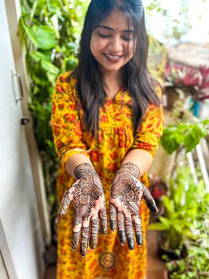 Hey, I'm Shahina. Mehendi is my quiet happiness. Started out in Thrissur, Kerala, now chilling in Bangalore. I love mixing old-school and bold new styles. Every design tells a story - maybe your coffee dates or baby shower excitement. Brides now want minimal arabic mehendi too, not just heavy traditional ones. The best part? Seeing that deep, dark stain and a bride's big smile. That’s pure satisfaction, yaar.