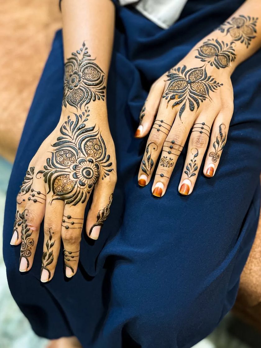 Sometimes, a small touch of henna is all you need. I create simple and minimalist designs, like delicate finger details, small motifs, or elegant patterns for the feet, perfect for those who want a subtle yet beautiful adornment.