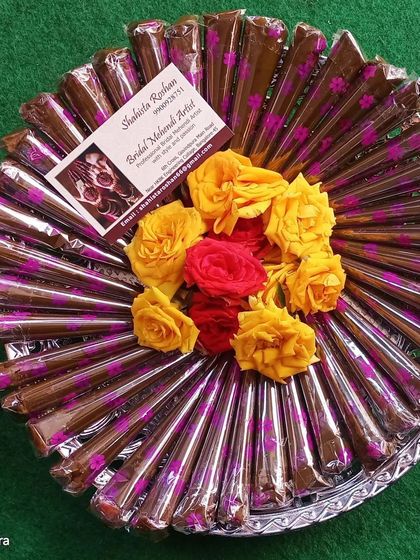 We are professional mehndi artists specializing in custom bridal and non-bridal designs using our own fresh, organic henna. Our passion is creating intricate art and our goal is a happy bride.