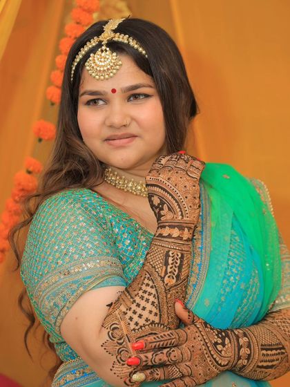 Hi, I'm Shalini. Life took a sharp turn for me after my corporate days. I was a software engineer with a fancy degree, then marriage happened, and suddenly, mehendi became my world. My first big client? Total fluke. Got a call, landed at Samod Palace, and boom - Bollywood family! I didn’t even know who they were till later. Honestly, I was so nervous, didn’t even take a selfie! That day taught me – sab normal hi hote hain (everyone’s just normal).