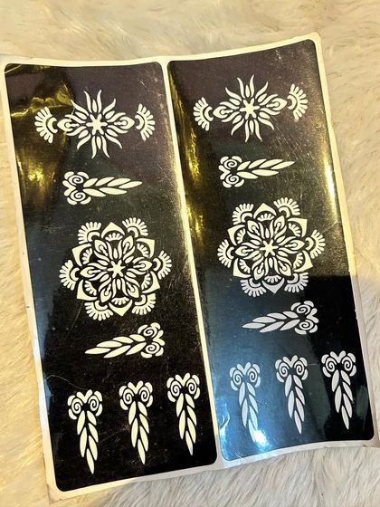 If you love the look of henna but don't want to freehand, my stencils are the perfect solution. Just peel the stencil from the backing, stick it firmly onto your skin, and apply a thick layer of my henna paste. I offer a wide variety of designs, including floral, mandala, and geometric patterns for palms, fingers, and wrists.