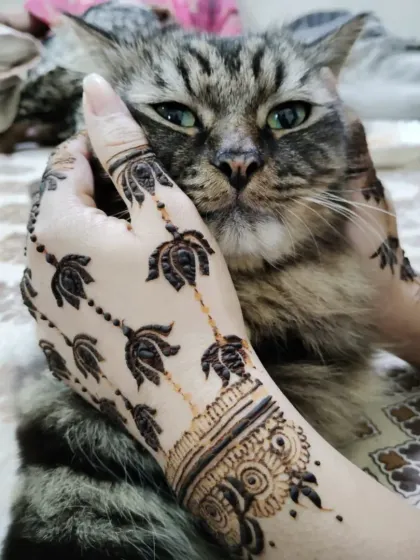 Bismillah. Hey! I’m Shama, your Navi Mumbai henna artist and total #hennaaddict. Started as a hobby, now it’s my small biz and heart. I go mad over new mehndi designs and that deep stain—Stain Goalsss, yaar! Every pattern, whether for a bride or just for fun, I pour all my love into. When I’m not working, I’m chilling with my cat. Thanks for all the pyaar (love)!