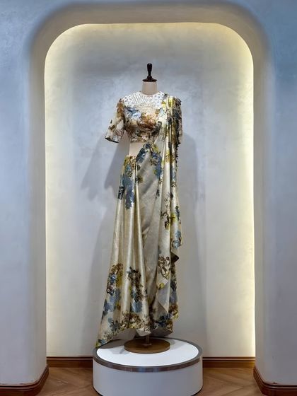 I design sarees that are both beautiful and easy to wear. Explore my collection of pre-draped sarees for a modern, hassle-free look, or let's create a bespoke blouse with intricate handwork to elevate your favorite traditional saree. From delicate pearls to bold tassels, your dream blouse is just a sketch away.