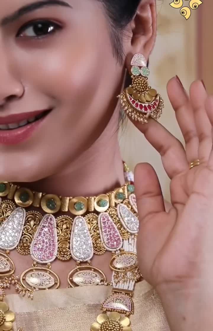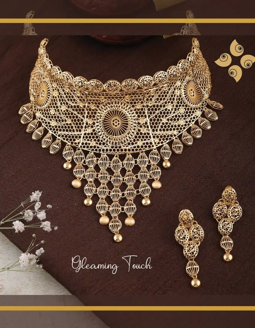 Beyond bridal wear, we offer a vast collection of statement necklaces and chokers. This gallery highlights the diversity of our design capabilities, from intricate all-gold filigree work to modern pieces with enamel and semi-precious stones, ensuring your inventory has something for every occasion.