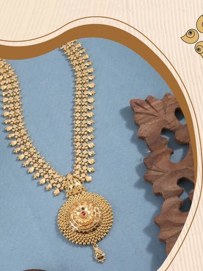 Our wholesale necklace collection features a vast array of designs, from elegant chokers to elaborate long haars. Crafted in pure 22kt gold, these pieces incorporate various styles including antique, temple, and modern filigree work, providing versatile options for both daily wear and grand occasions.