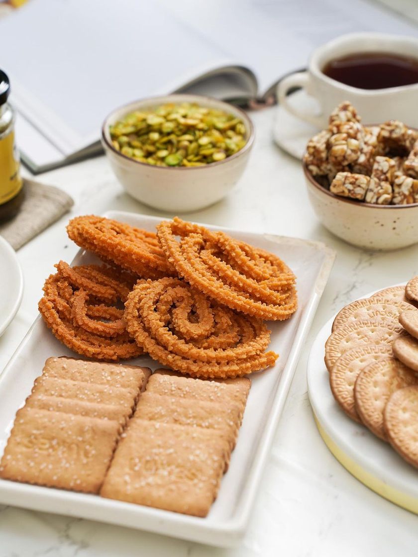 This collection features all my savory family favorites, perfect for snacking any time of day. You will find a variety of textures and flavors, including classic butter murukku, spicy corn mixture, flavorful peanuts, and seasonal specialties like avarebele.