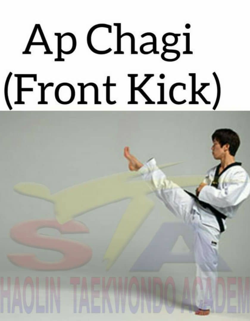 Every student, from beginner to advanced, masters the core techniques. Here are some of the fundamental kicks you will learn, including Ap Chagi (front kick) and Dollyeo Chagi (roundhouse kick).