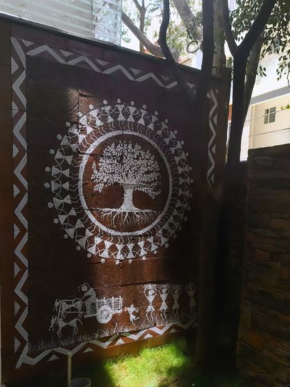 Custom Warli Mural - Traditional Warli folk art, painted on walls for homes or offices. Adds a unique, earthy vibe.