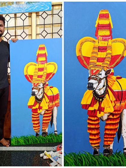 Namma Bengaluru is home, I’m Sharan. Art is my heart, simple. I do portraits that go deeper than just a look-alike - I want it to feel like a part of you. That’s why I started painting with blood, yeah, literally. It’s raw, personal, nothing else comes close. When I’m not painting, I’m probably riding my Enfield, chasing good vibes and open roads. But really, my studio is where I turn memories into something permanent. That’s my true calling.