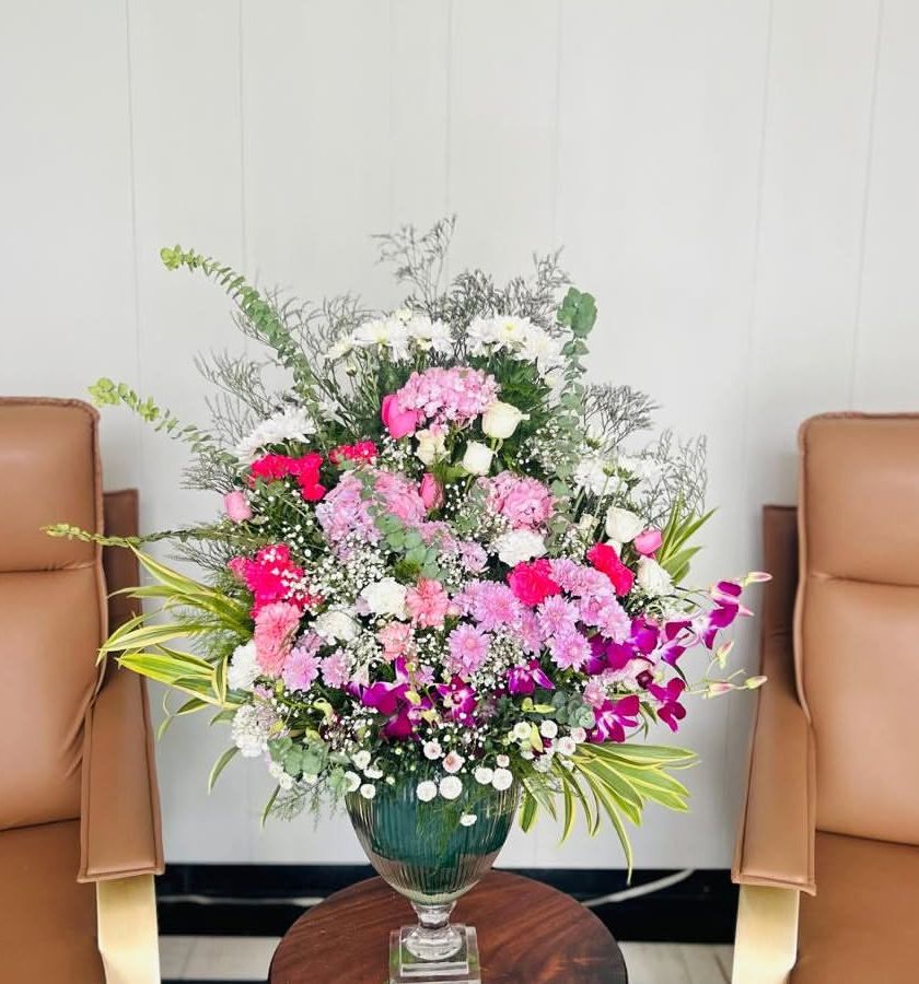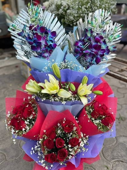 I create stunning arrangements using a mix of fresh, seasonal flowers like lilies, orchids, carnations, and gerberas. These are perfect for birthdays, anniversaries, or when you want something unique and colorful.