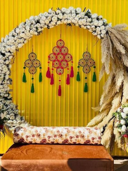 - Haldi function decoration and Mehndi backdrops at home
