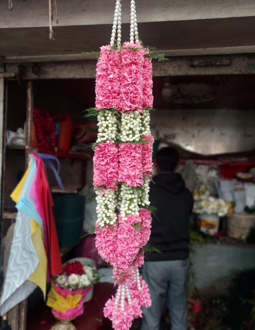 I provide all the essential fresh flower items for your wedding rituals. This includes custom jaimalas for the couple, beautiful floral jewellery for Haldi or Mehndi, and the traditional phoolon ki chaadar for the bride's entry.