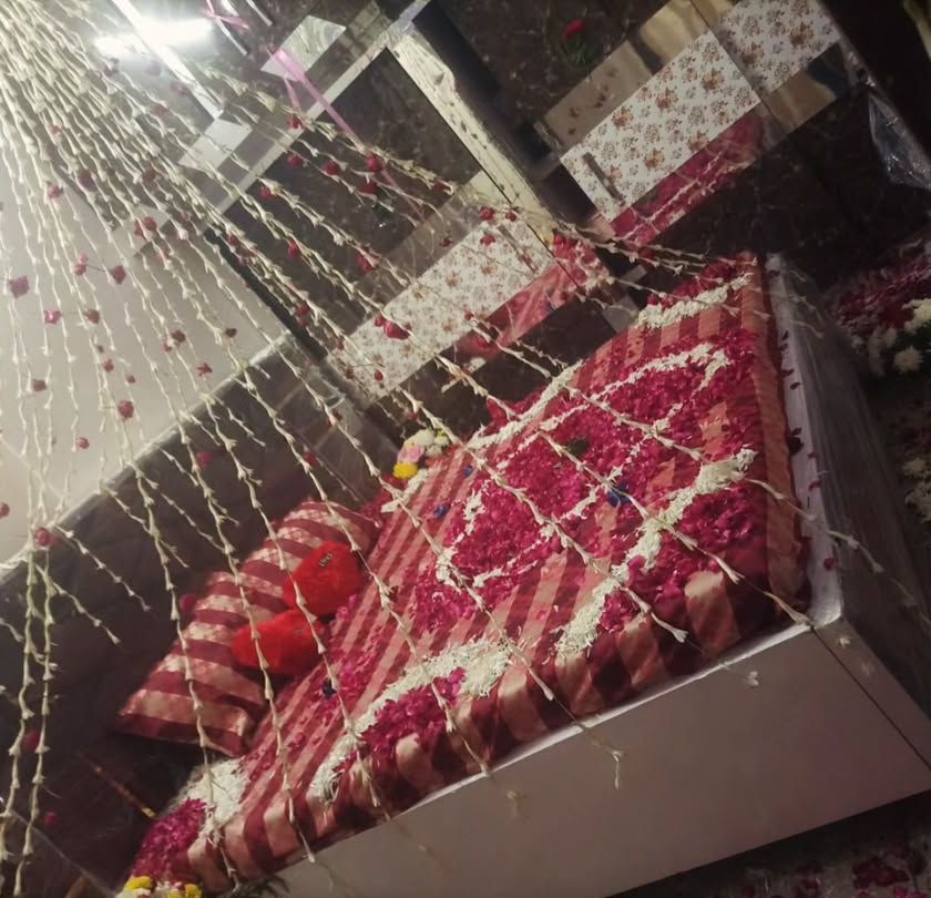 I offer special flower decoration services for the bridal room to create a beautiful and romantic setting for the first night. Setups can include flower arrangements on and around the bed, petal pathways, and hanging floral strings.