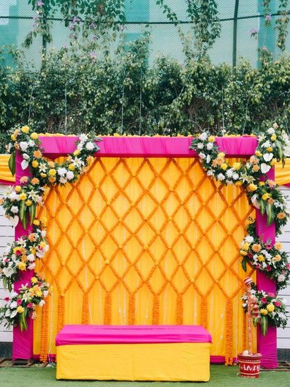 I create vibrant backdrops and decor for your Haldi and Mehndi functions, right at your home or venue. From traditional genda phool themes with colourful drapes to modern floral arches, I handle everything to make your pre-wedding events picture-perfect.
