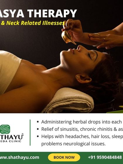 This cluster combines therapies that target the head and upper respiratory system. Nasya therapy is a core treatment that uses herbal oils administered through the nose to clear sinus blockages, relieve headaches, treat sleep apnea, and even address hair fall by improving circulation to the scalp.