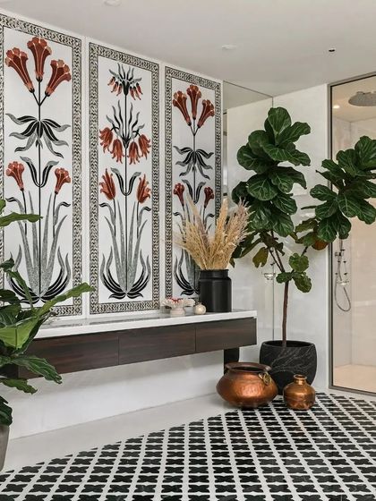 Artisan Collaborations - Love working with craftsmen for custom pieces like ceramic murals and mother-of-pearl jaali work.
