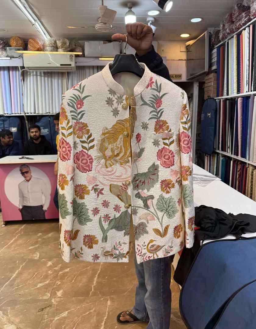 Come visit my store in Chattarpur to see the full collection. I have racks full of sherwanis, suits, and Indo-western outfits, plus a huge selection of accessories. You can try on different styles until you find the perfect one.