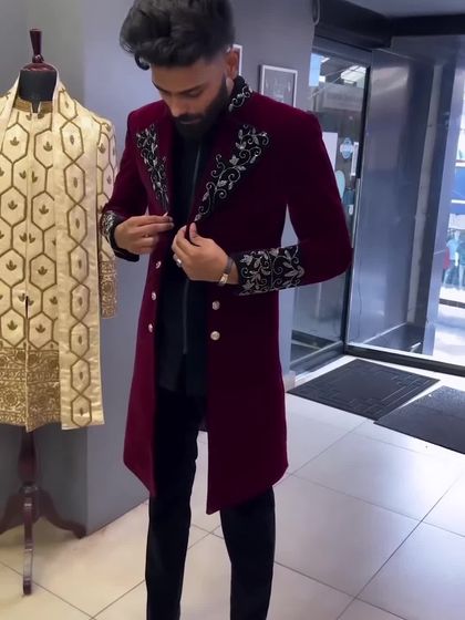 For your engagement, sangeet, or if you just want a modern twist on traditional wear. This collection includes stylish Jodhpuri suits, bandhgalas, and long jackets with unique cuts and fabrics. I can also create custom designs based on what you've seen online.