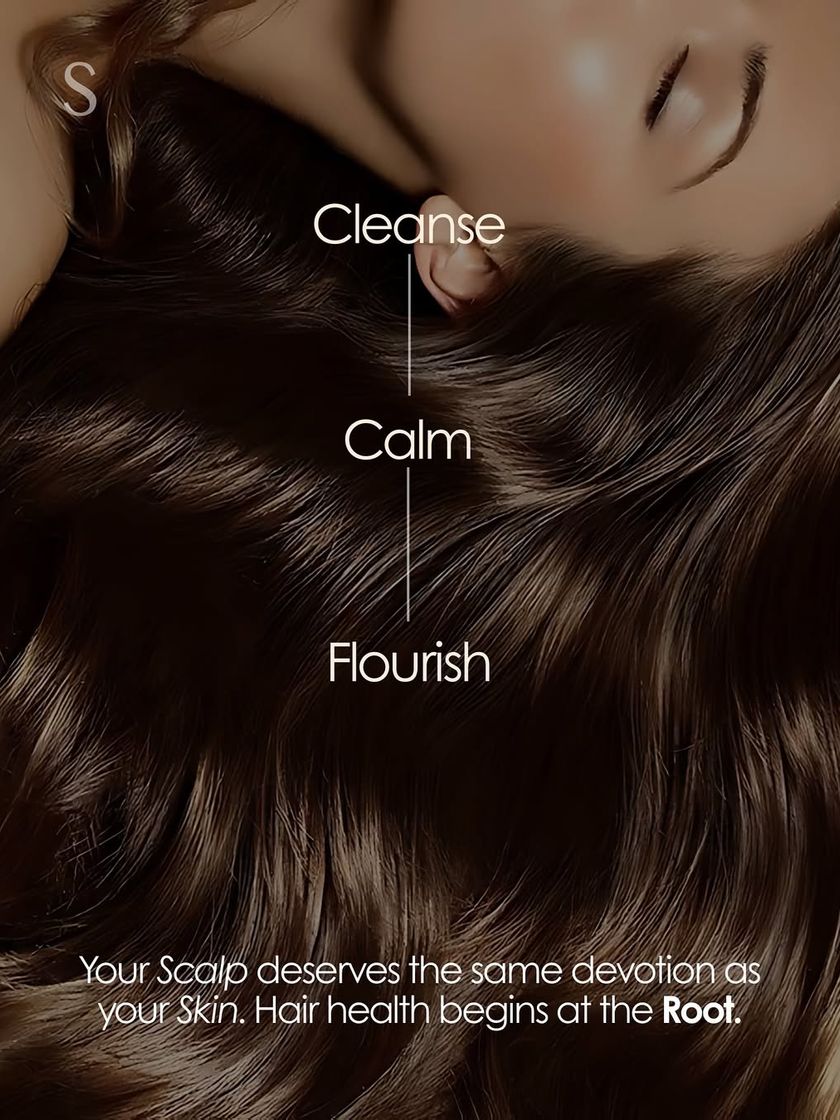 We believe healthy hair is supported from the root up. Our philosophy treats the scalp with the same care as the face, focusing on consistent, intentional rituals over temporary trends. This approach addresses concerns like thinning and dullness at their source.