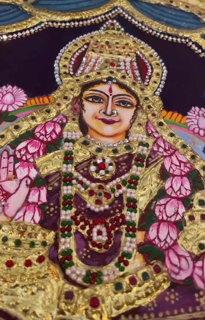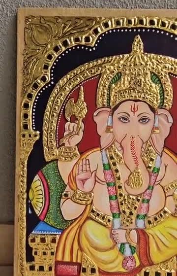 I create authentic Tanjore paintings, a classical South Indian art form known for its rich colors and real gold foil embellishments. Each piece is made on a wooden board using natural colors and semi-precious stones, perfect for adding a divine and opulent touch to your pooja room or as a treasured family heirloom.