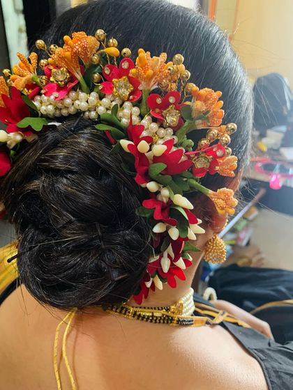 A complete look goes beyond makeup. I offer expert hairstyling, from traditional buns adorned with flowers to modern, chic updos and curls. I also provide professional saree draping to ensure your outfit looks perfect and stays in place throughout your event.
