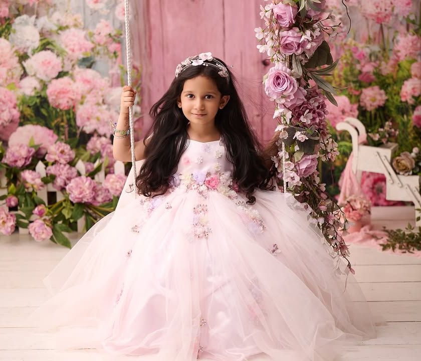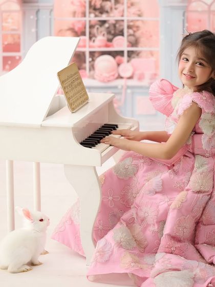 We create magical, storybook portraits for children that capture their unique personalities. Using elaborate props like floral swings, miniature pianos, and fairy wings, we design themed setups that let your child's imagination come to life.