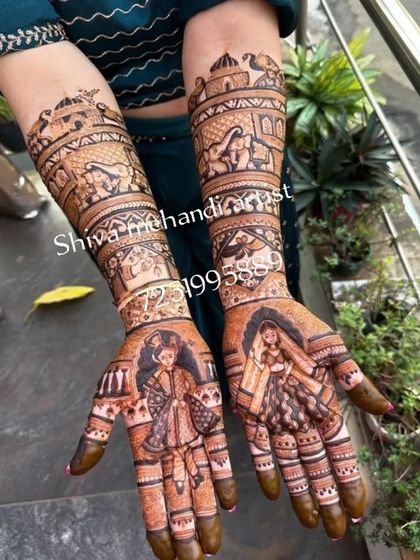Hi, I’m Shiva. Mumbai is home but my mehendi art has taken me to many places, even outside India. Been doing this for 11 years now, and I’ve got my own team. Bridal portrait mehendi is my thing, and sometimes you’ll spot my work on celebrities too. Whether it’s a big wedding or a small festival, I just want the mehendi to look perfect. Simple funda - detailed work, happy clients.