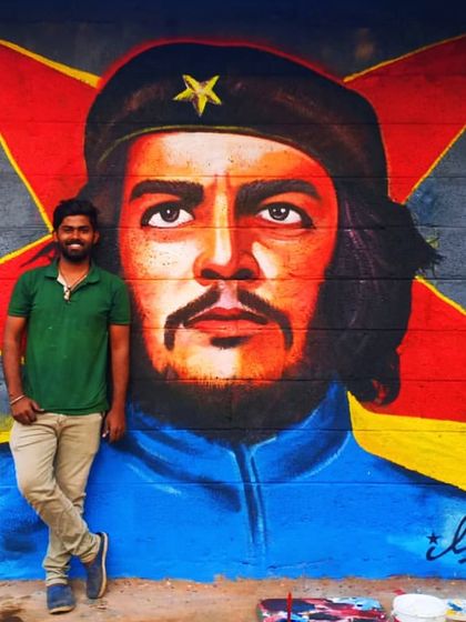 Namaskara, I’m SK - Shivakumar Kandikere. My journey started with a clay Ganesha idol, selling them for 10 rupees, just for the joy. Art is my worship, kayakave kailasa (work is divine). If I’m not painting, I’m probably riding my bike somewhere in the rain or mountains. I love my roots - ide naadu, ide bhaashe (this land, this language). I join campaigns to paint school walls, bringing colour and smiles. For me, art is all about spreading happiness.