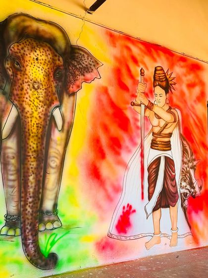 I design and paint murals using traditional Indian styles, modern art, and clay sculpting directly on walls for homes, schools, and public spaces, often working with local communities and focusing on educational themes.