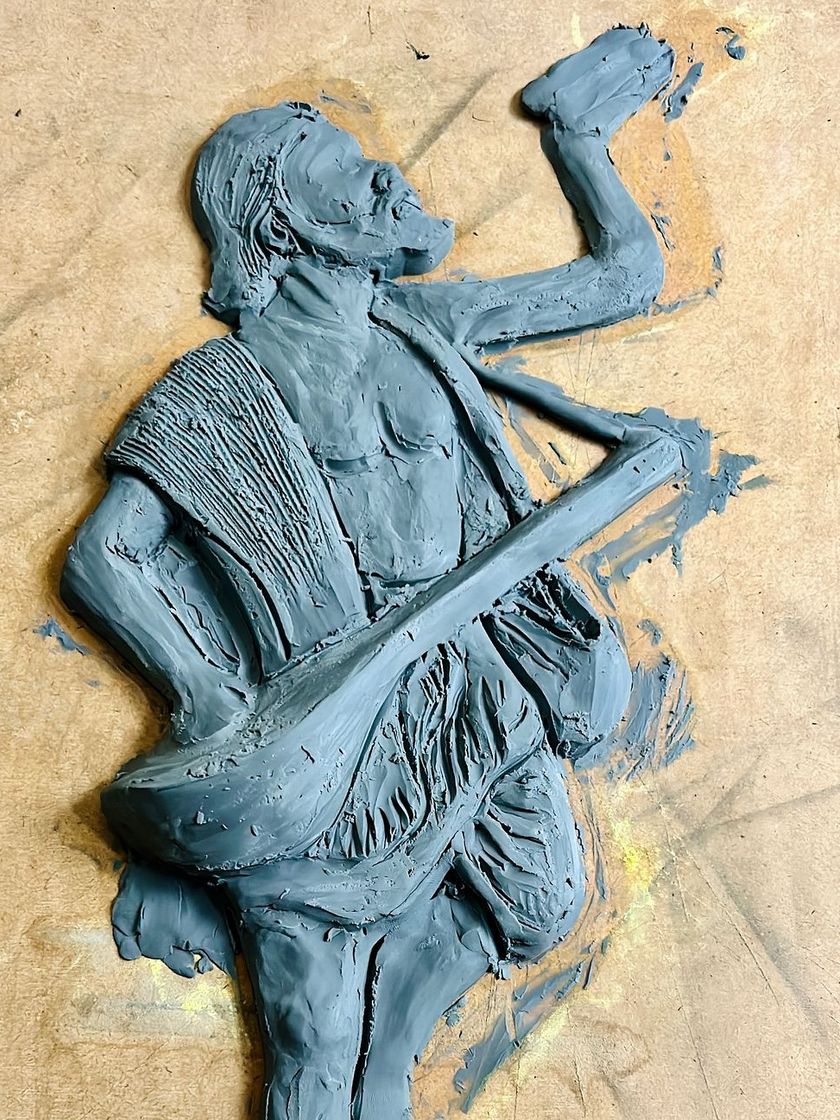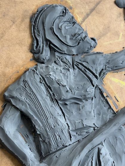 I bring stories of devotion to life in 3D for your walls. This custom relief mural of the saint Kanaka Dasa shows the process from shaping the wet clay to the final detailed and painted artwork, perfect for a home or community space.
