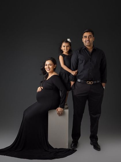 I do family photoshoots in studio or outdoors, mixing classic portraits with candid moments, and I include pets, milestones, and your style preferences.