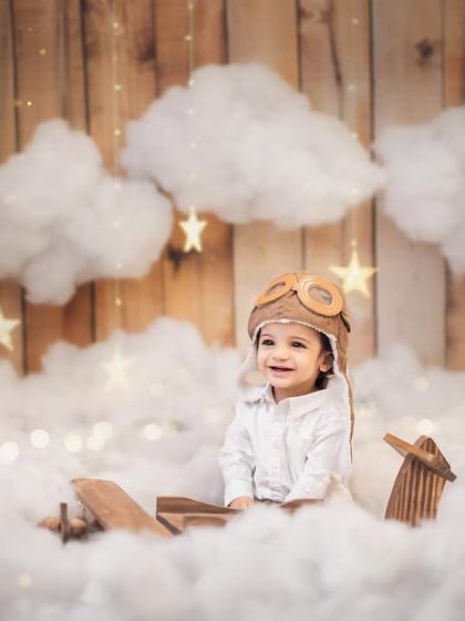 Your baby's first birthday is a once-in-a-lifetime event, and I love creating magical setups to celebrate it. From adventurous pilots and dreamy floral wonderlands to custom themes you've imagined, we'll design a bespoke session at my Andheri studio to capture your little one's personality.