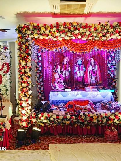 Religious & Spiritual Events - Specialist in Guru Ji Darbar flower decor, Janmashtami floral setup, and other festival decorations.