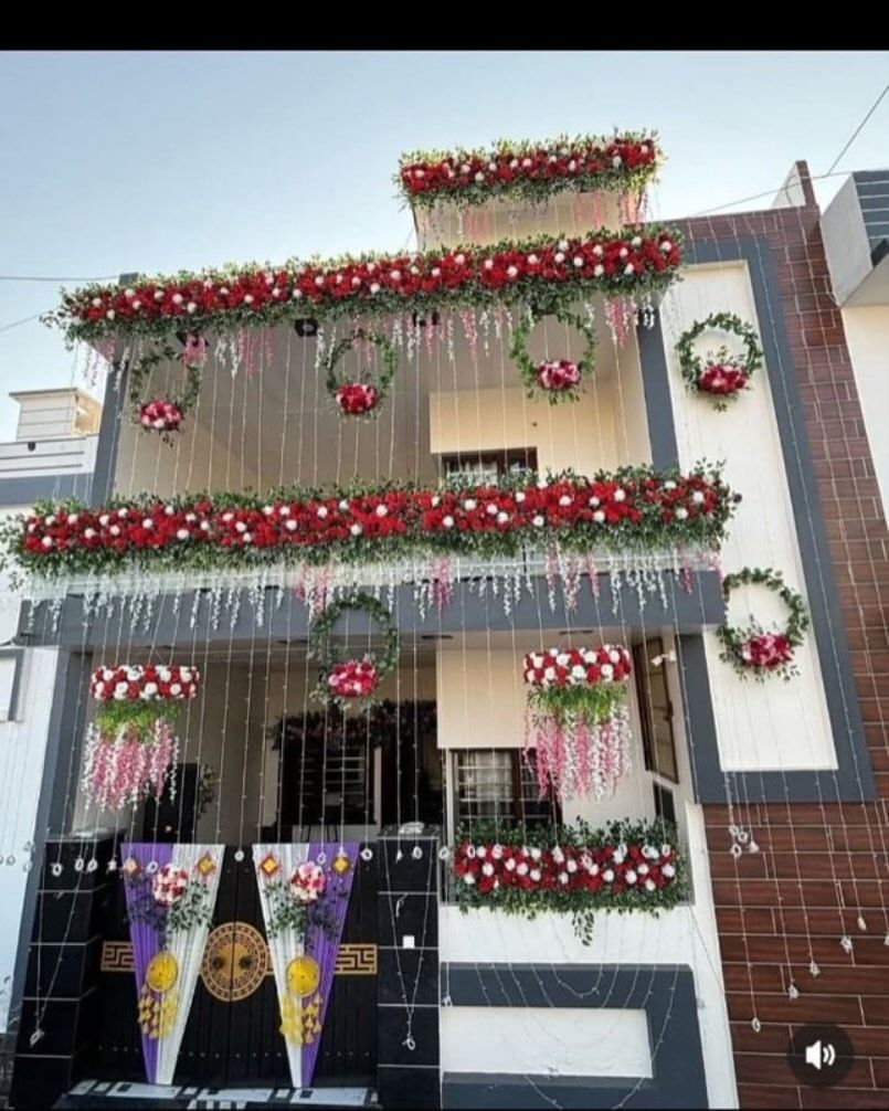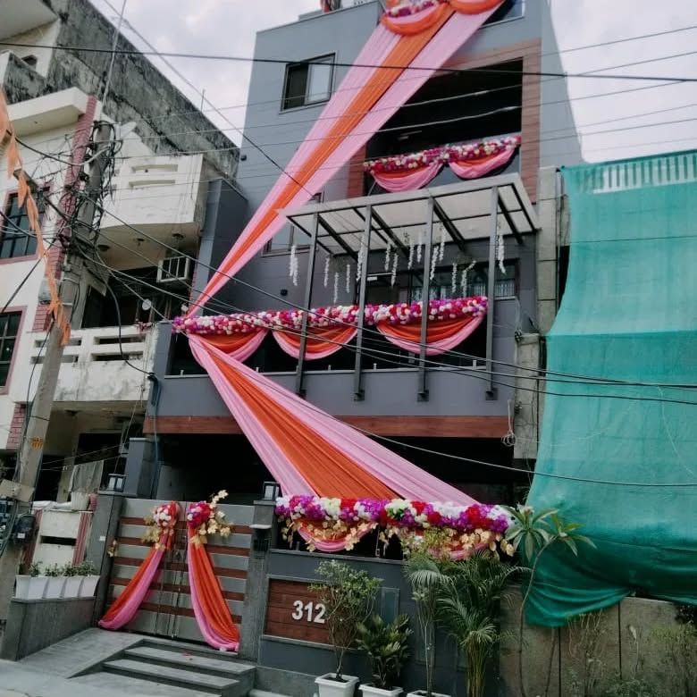 I make sure your guests feel the celebration from the moment they arrive. I decorate entire houses (kothis) with flowers and lights, create beautiful entrance gates, and design stunning walkways that lead into your event.