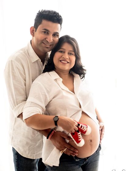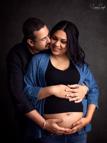 I do maternity photoshoots in studio or outdoors, with options for solo, couple, or family, and you can choose traditional or casual styles.