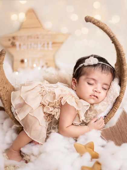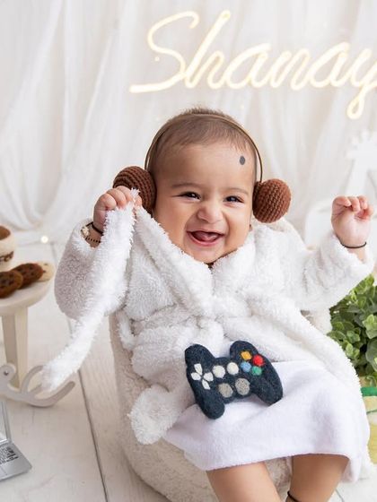 I do milestone baby and toddler photoshoots with safe setups, lots of theme options, and parents or siblings can join in at my studio or outdoors.