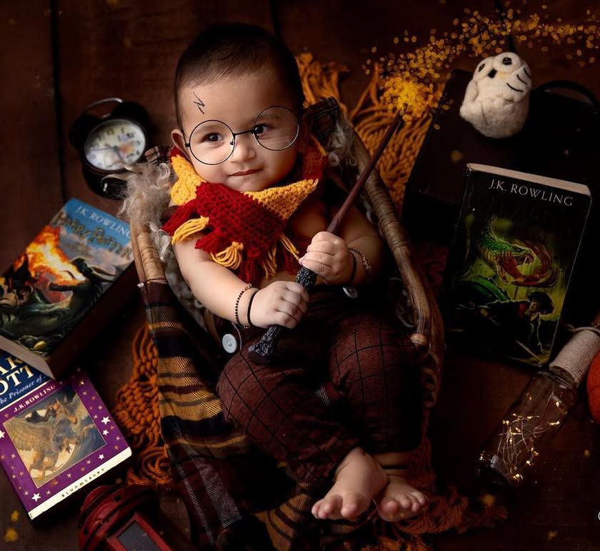 My studio is a wonderland of props, outfits, and backdrops! We can bring any idea to life, from a magical Harry Potter world to a 'Chilling Like a Boss' setup. If you have a unique theme in mind, I'm always excited to create something new just for you.