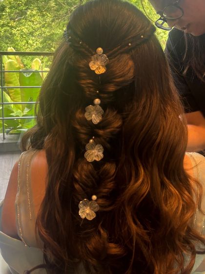 Hey, I’m Shivani. Been doing hair for 7 years now, and honestly, I still get excited every time I pick up my tools. I bounce between Jaipur and Mumbai, but my work’s taken me everywhere – crazy, right? For me, hair’s not just hair, it’s your crown. Making brides happy on their big day or glamming up someone for a party – that’s what gives me a kick. I’m all about those romantic bridal hair vibes.