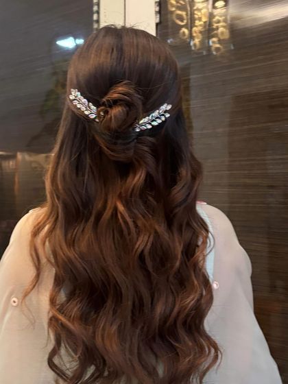 Hey, I’m Shivani. Been doing hair for 7 years now, and honestly, I still get excited every time I pick up my tools. I bounce between Jaipur and Mumbai, but my work’s taken me everywhere – crazy, right? For me, hair’s not just hair, it’s your crown. Making brides happy on their big day or glamming up someone for a party – that’s what gives me a kick. I’m all about those romantic bridal hair vibes.